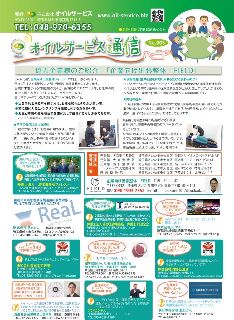 Post navigationPreviousPrevious post:【オイルサービス通信No.002】協力企業様のご紹介 新日本総合税理士法人NextNext post:【オイルサービス通信NO.13】ラジオ日本に出演させて頂きました。
