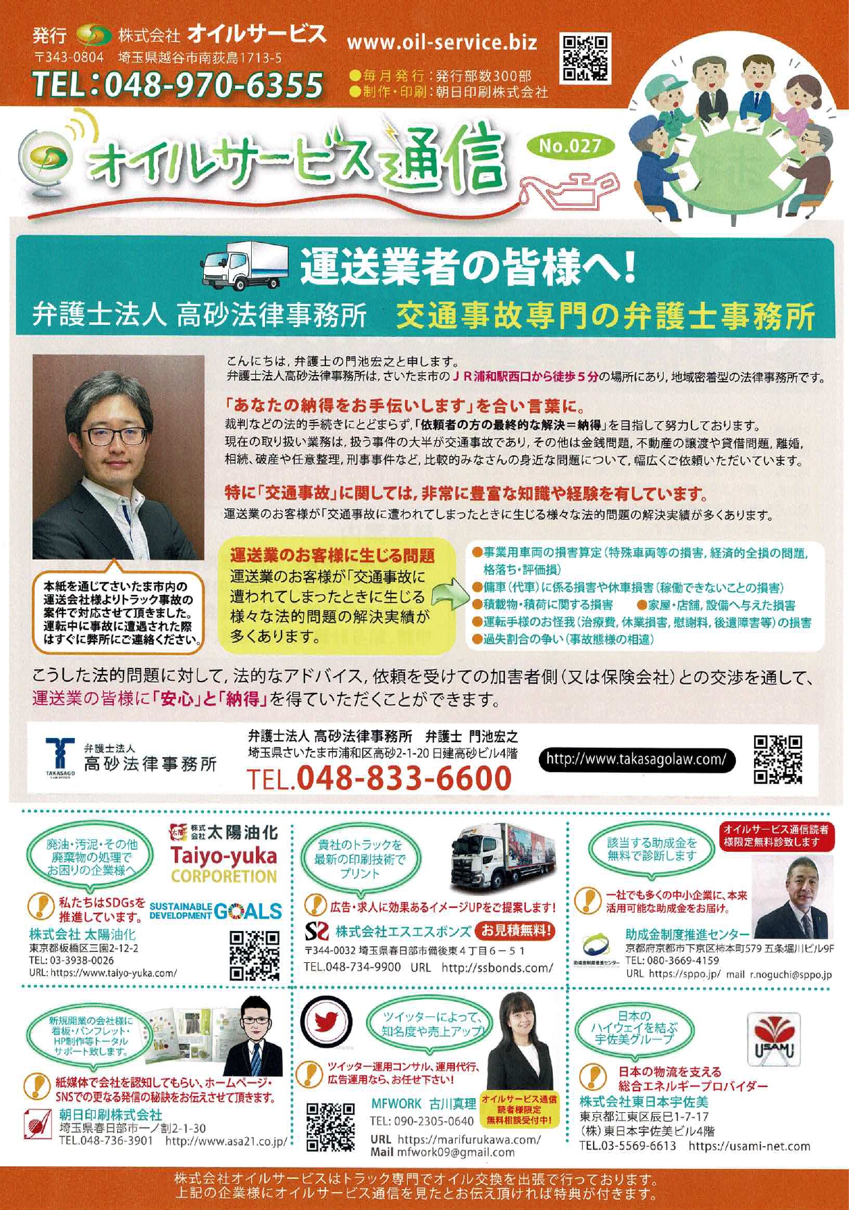 埼玉県越谷市のトラック全般出張オイル交換サービスの株式会社オイルサービス(埼玉)では小型/中型/大型トラック/大型特殊/けん引車/トレーラー/営業車保有の運送会社様向け、出張費・工賃無料オイル交換で時間コスト削減。グリーン経営、ISO対応も。