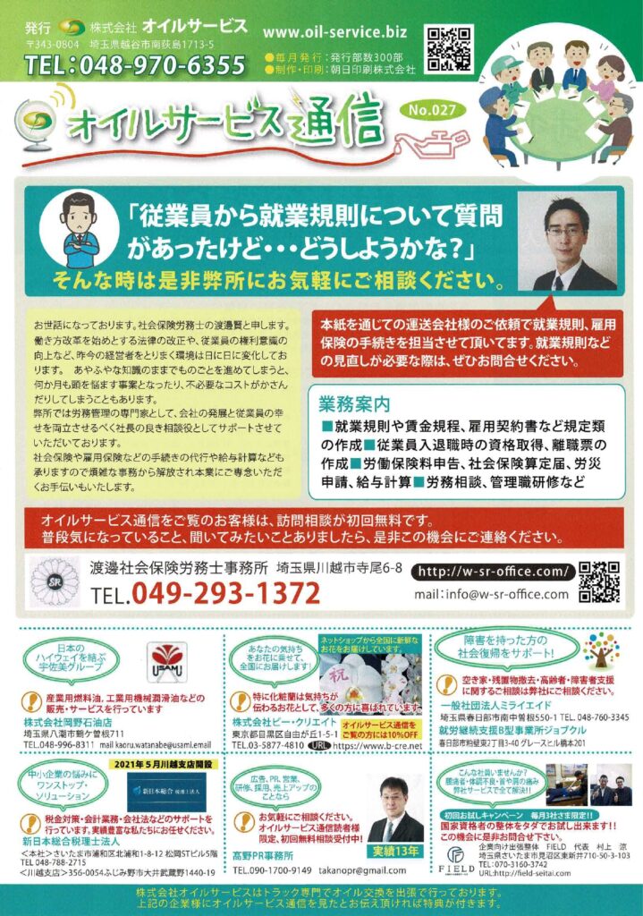 Post navigationPreviousPrevious post:【オイルサービス通信No.027】運送業者の皆様へ!交通事故専門の弁護士事務所NextNext post:【オイルサービス通信No.028】株式会社 太陽油化 ~危険物のことならお任せください~