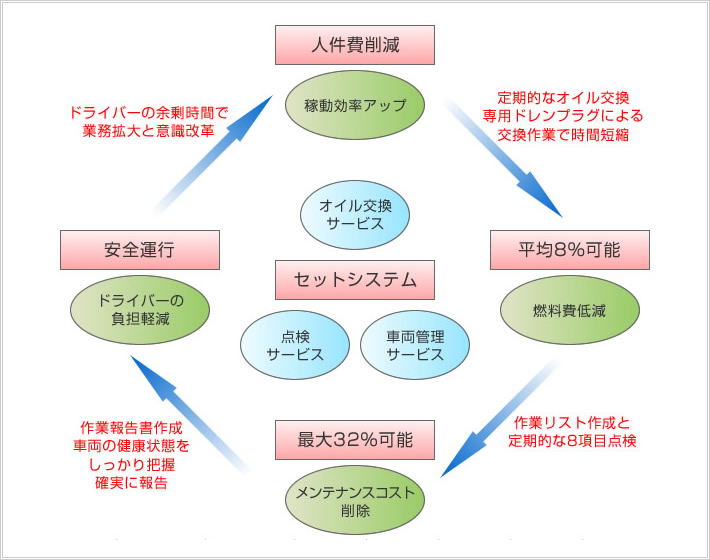 埼玉県越谷市のトラック全般出張オイル交換サービスの株式会社オイルサービス(埼玉)では小型/中型/大型トラック/大型特殊/けん引車/トレーラー/営業車保有の運送会社様向け、出張費・工賃無料オイル交換で時間コスト削減。グリーン経営、ISO対応も。